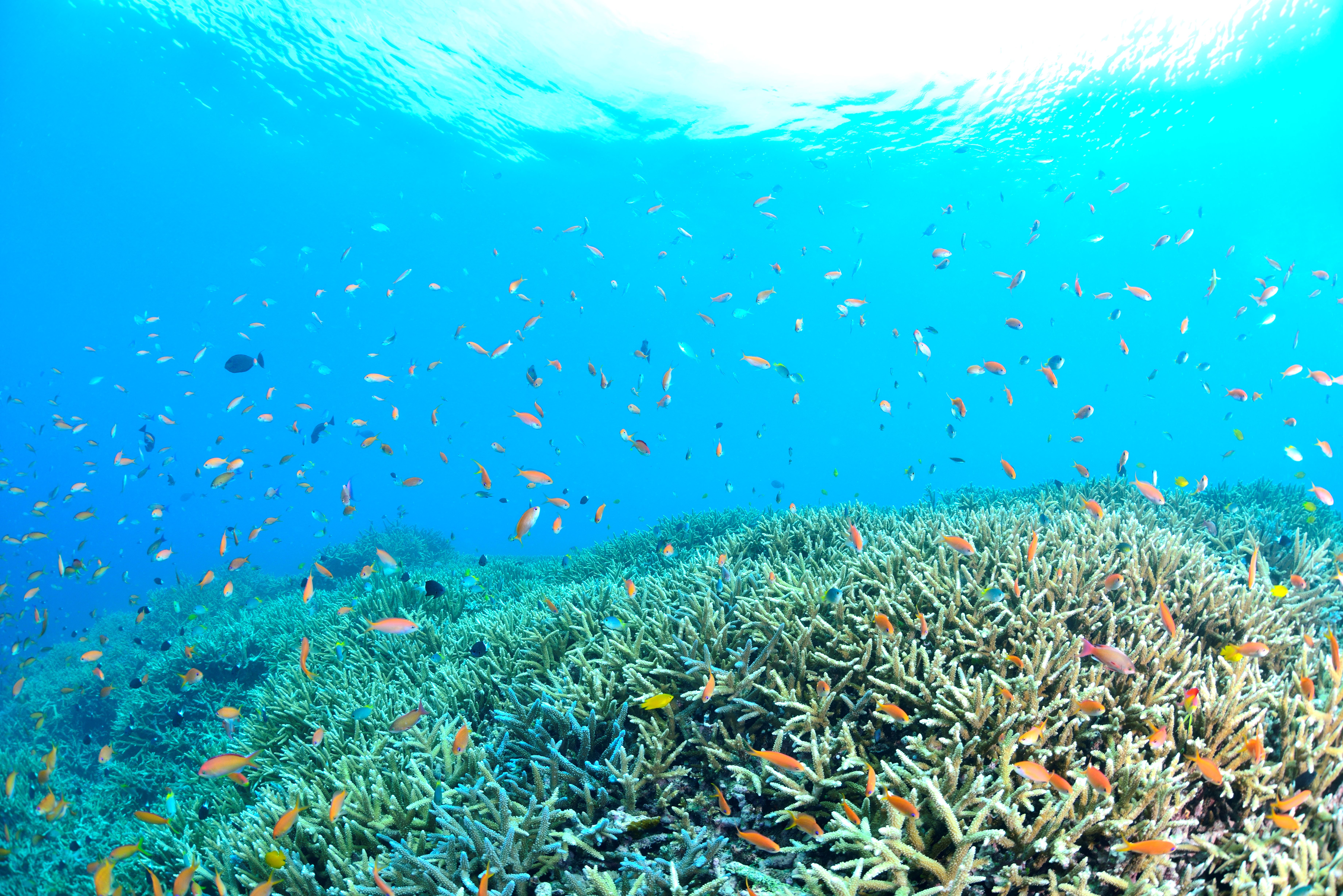 世界中の海には約800種類のサンゴが存在し、そのうち約300種類以上が沖縄の海で確認されています。当リゾートがあるここ恩納村でも、キクメイシ、ミドリイシ、ハマサンゴなど多くのサンゴが分布しています。サンゴは魚のすみかや産卵場所として、また海岸を守る防波堤として重要な役割をはたし、さらには海中の二酸化炭素濃度の調節にも深く関わっています。1997年から1998年にかけて世界的な海水温の上昇により大規模な白化現象が起こり、沖縄のサンゴ礁も影響を受けました。それと同時にサンゴを食べるオニヒトデの大発生もありサンゴを取り巻く環境は年々悪化の傾向となっております。
