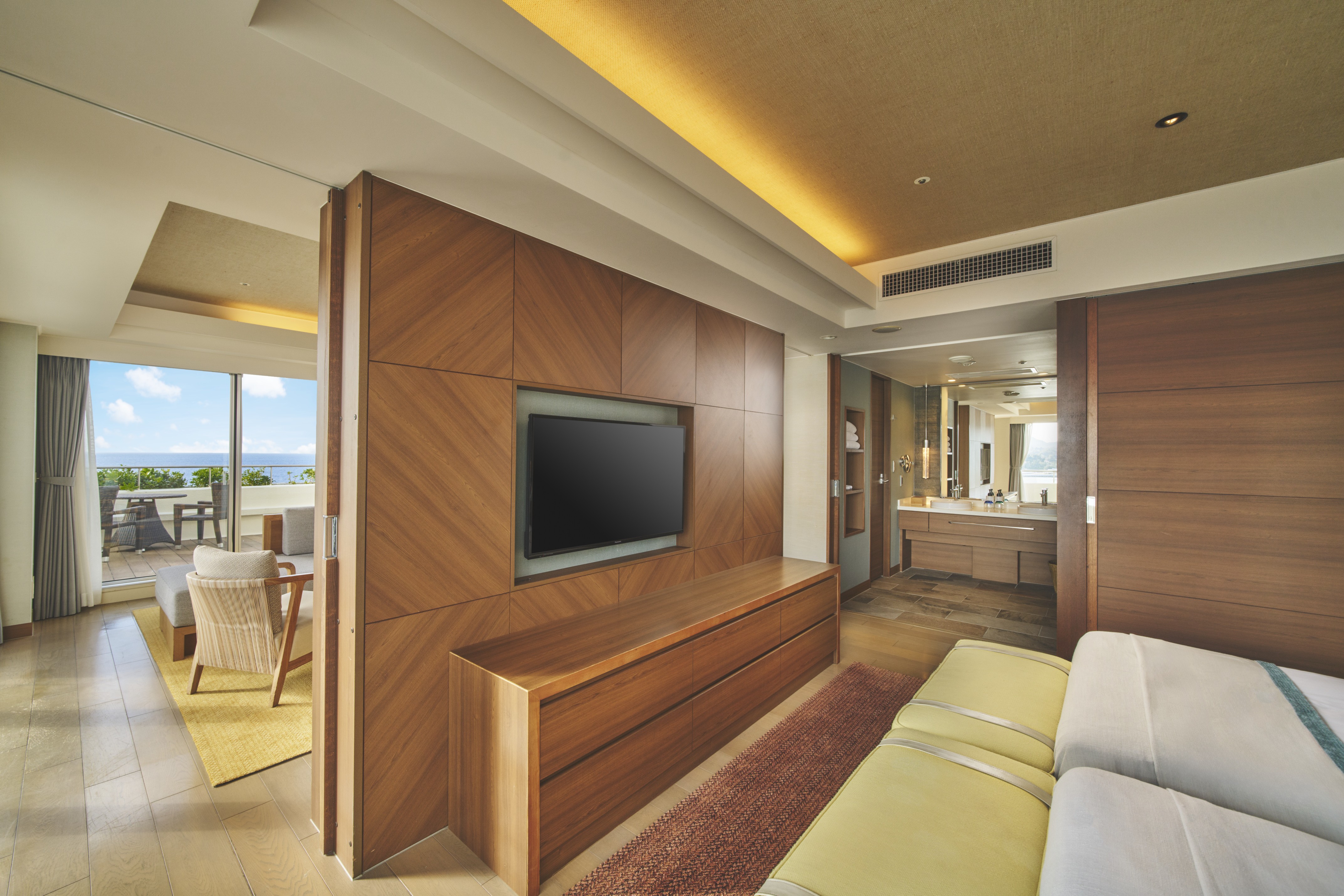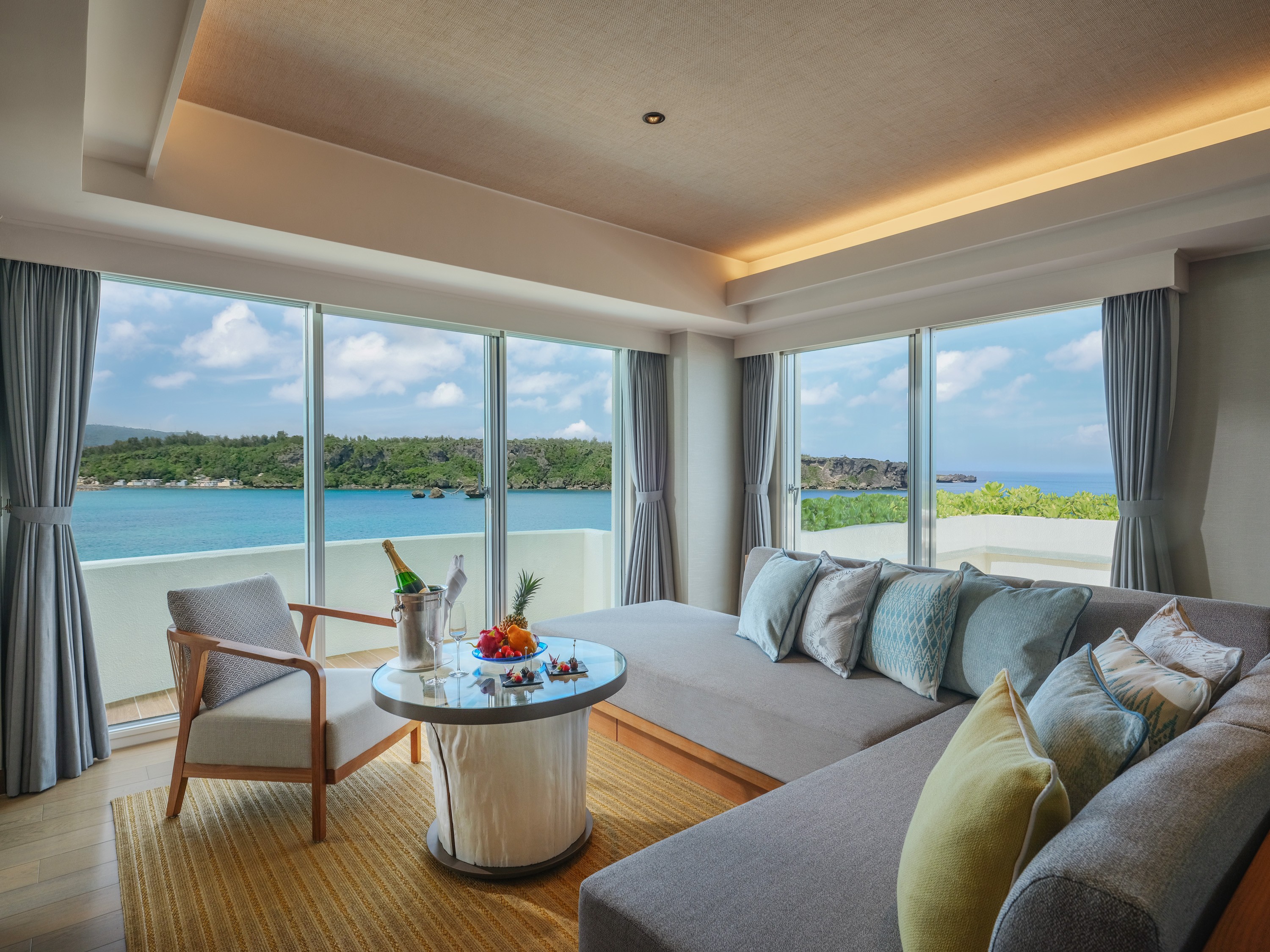모던하고 세련된 인타리아에 오키나와의 자연을 느낄 수 있는 차분한 색조. 눈앞에는 만자모의 다이나믹한 경치가 펼쳐지는 압권의 오션 뷰. 느긋한 거실에 넓은 전용 발코니를 갖추고 리조트에서의 고급 시간을 약속하는 인기 스위트 룸입니다.